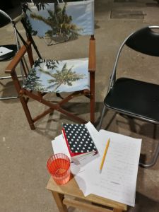 Our writer had come up from Birmingham for the day. She beat boxed the sound of a thudding heart as she talked about nerves and performance anxiety. Then we did a series of tasks. First of all we split into groups of two and interviewed each other about our personality and likes and dislikes. I came up with things about whistling my cats or that I would fight off zombies with an umbrella!