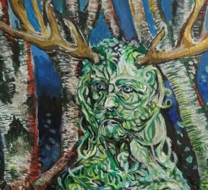 My painting of a green woman is coming on. I did some more today. I’m adding more metallic colours, to bring out the sheen on the leaves. Also I want to improve the background of the image. Hopefully it will feel more coherent when it is finished. Acrylic on canvas.