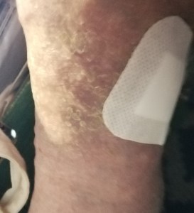 After a month of big, long, thick bandages and dressings my wound is 90% healed. I now have just a small dressing as the nurse says the wound is mostly scabbed over and feels tacky. I might be discharged soon. I can’t explain how it feels to be close to being free of the problem, I’m fed up but elated. I want to get back to normal, but the word patient is correct, you have to have patience to be a patient!