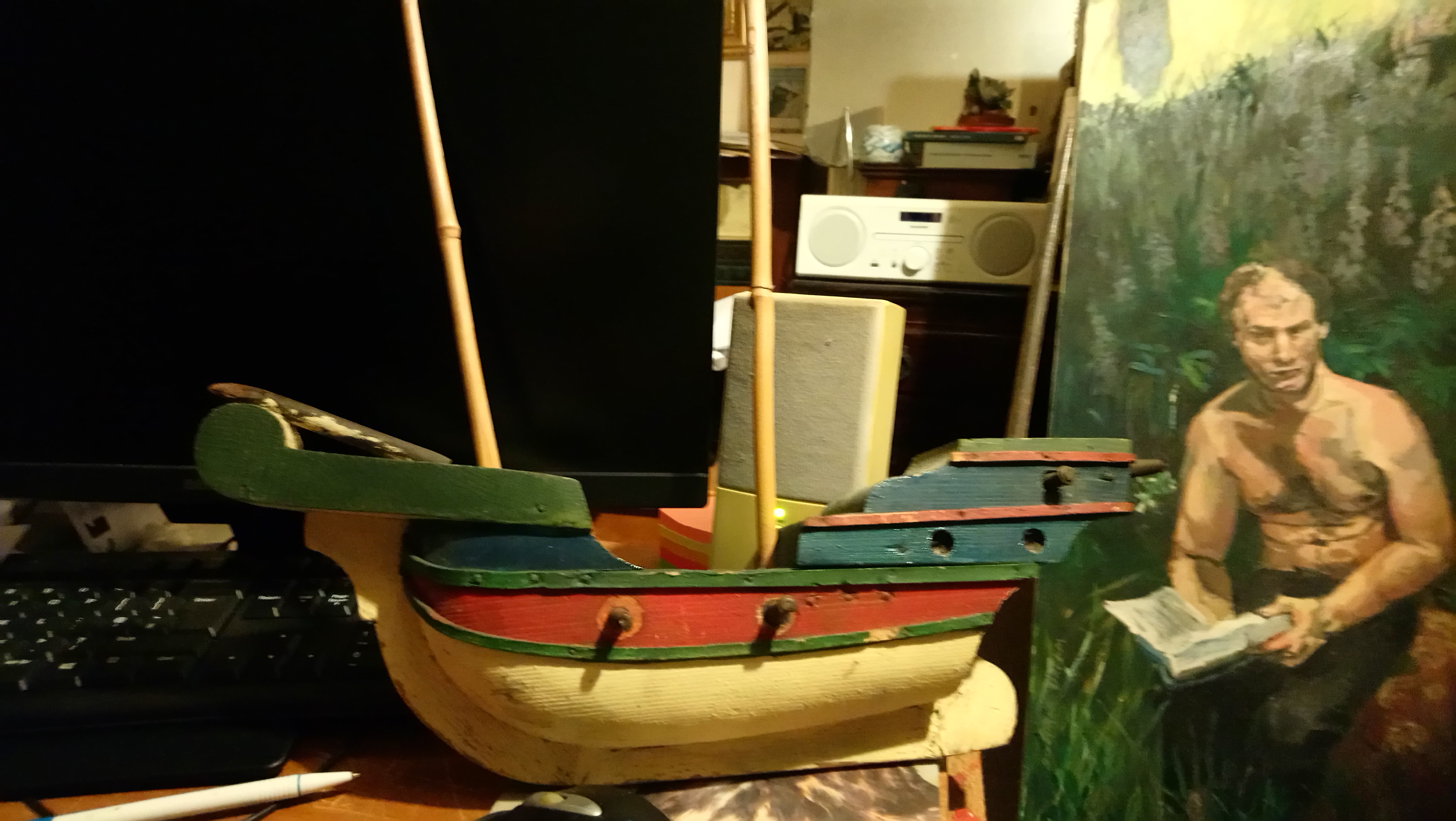 The boat is probably about 90 years old? The painting of my hubby is about forty years old. You know you are getting on when things you own start to age with you!